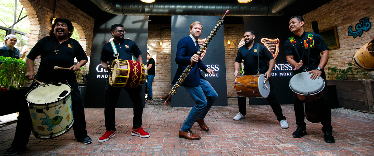 Peranakan tile motifs, henna designs and traditional Bornean fabric patterns sweep across the iconic black of the bottles and cans, with the golden GUINNESS harp standing proud in the centre. Vivid hues of red, blue and yellow leap out from the darkness, the bright colours highlighting the vibrancy of our individual and shared culture.